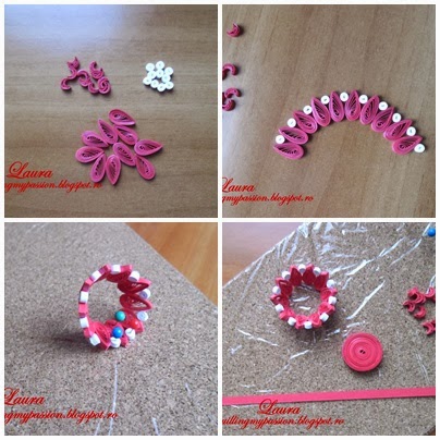 Pentru ghiocei am folosit fasii de 1-1,5mm latime, pe care le-am lipit in interiorul conului verde.